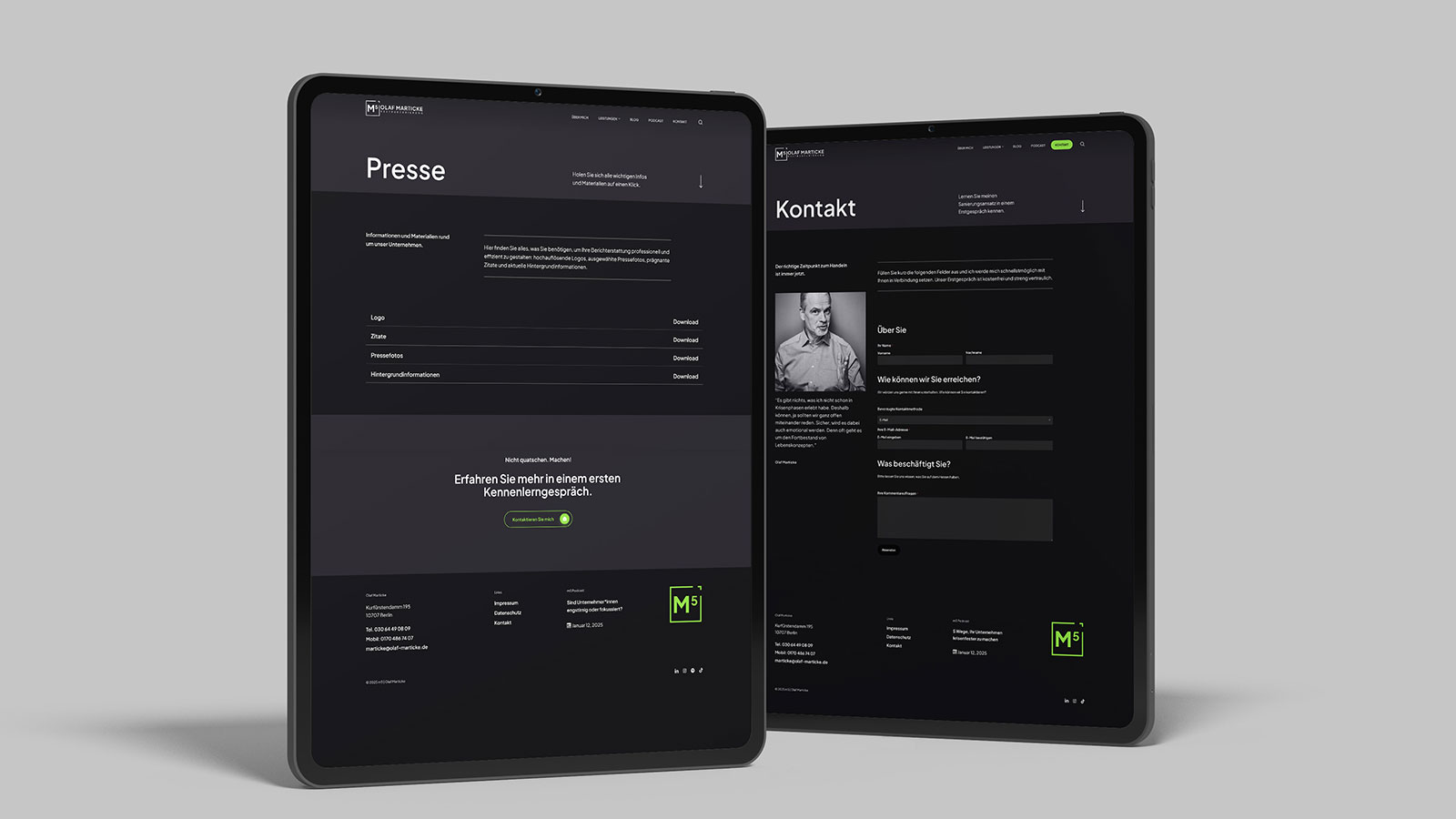 The aim was to establish a clearly profiled, trustworthy and converting brand presence – targeted at entrepreneurs, tax consultants and institutional decision-makers. From strategic setup to implementation, a consistent architecture was created that makes Olaf Marticke’s positioning digitally tangible and lays the foundation for sustainable growth.